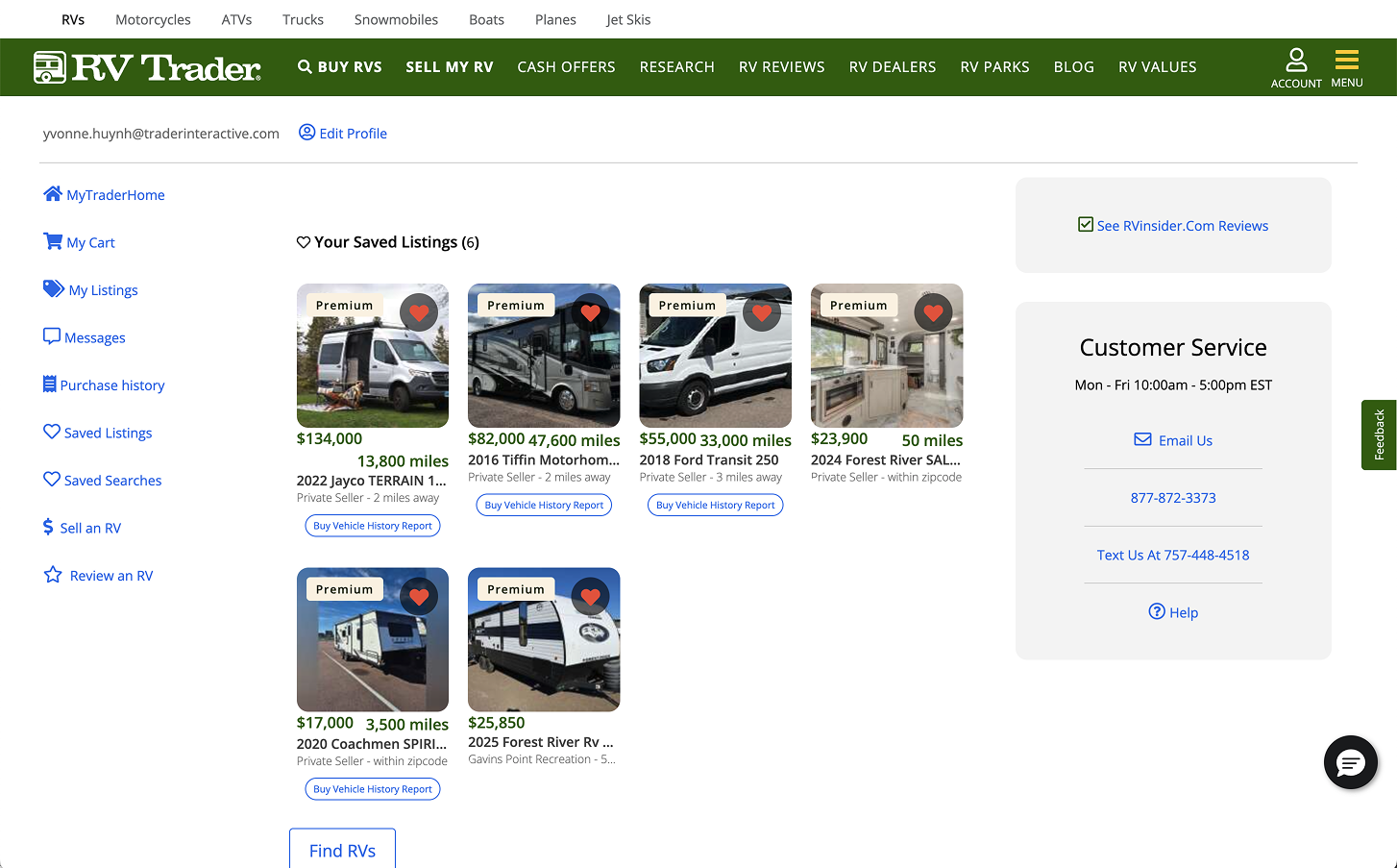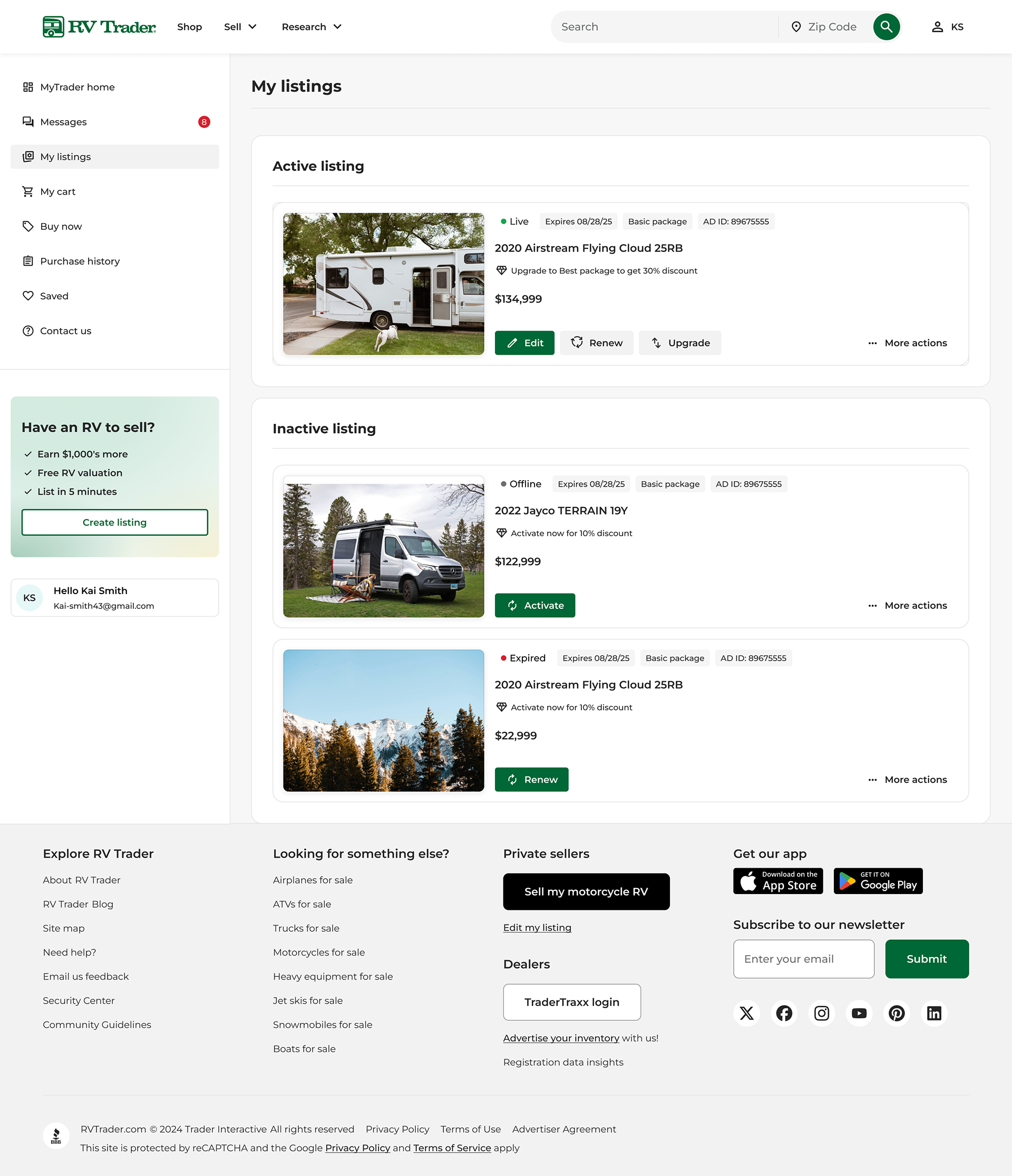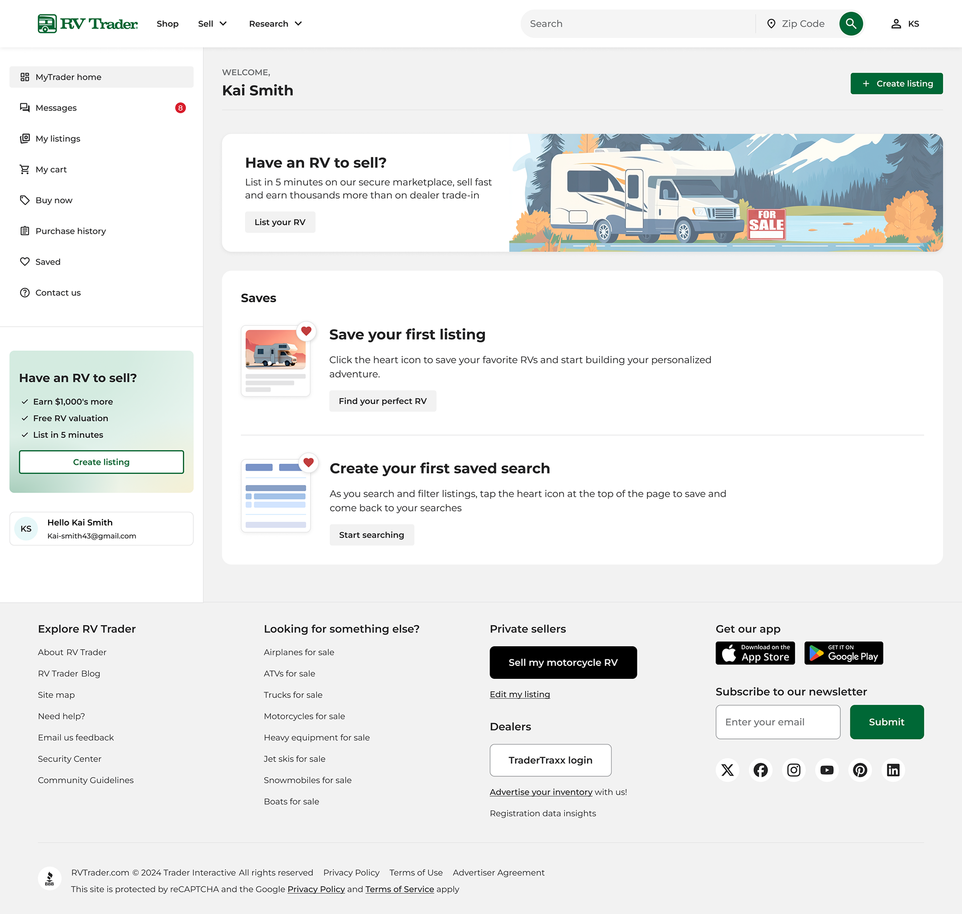 A core requirement of the redesign was to create a flexible, unified account center that could support the needs of all marketplaces under the Trader umbrella—including RVTrader, ATVTrader, CycleTrader, and Boatmart—while still allowing each brand to maintain its unique identity.