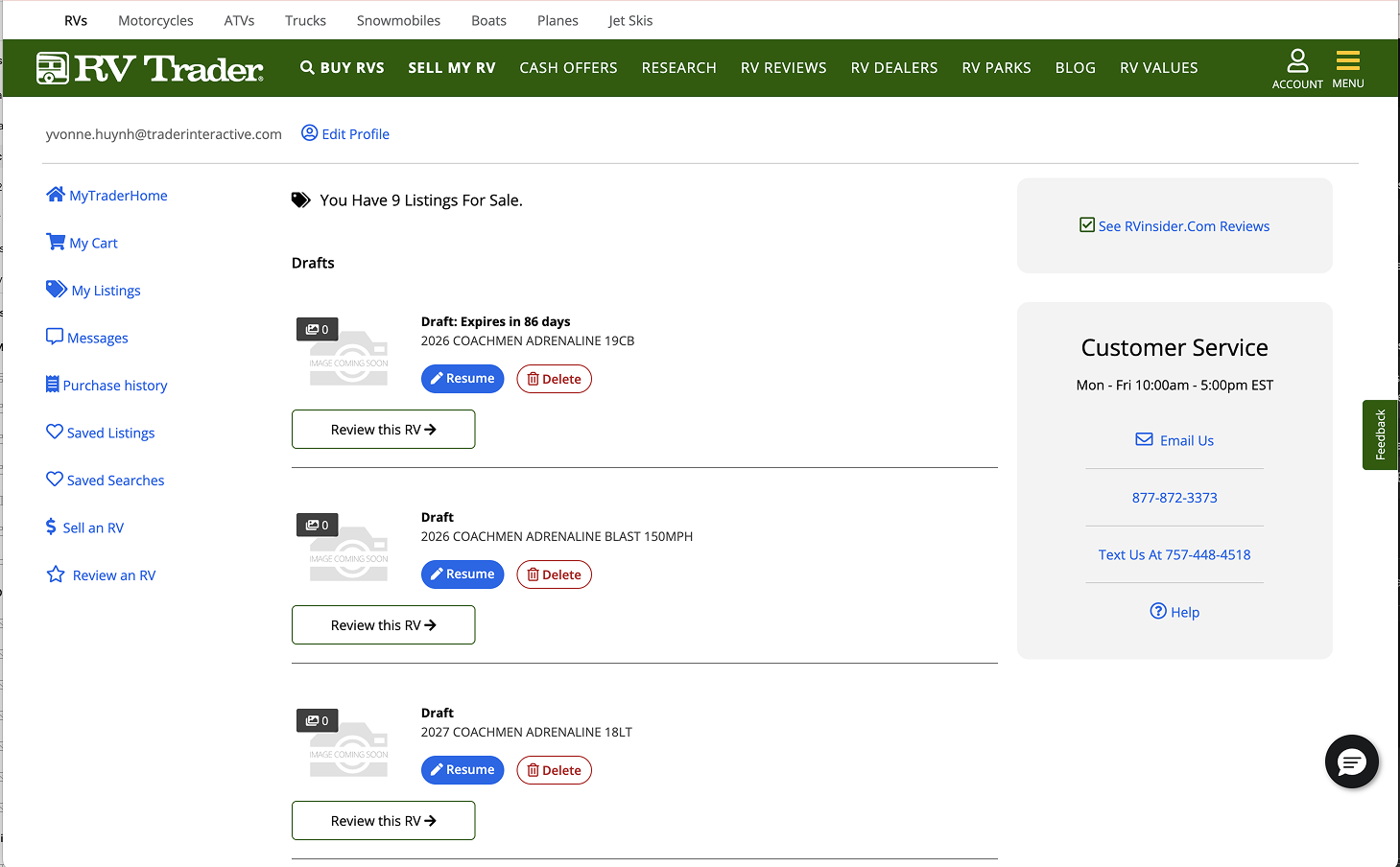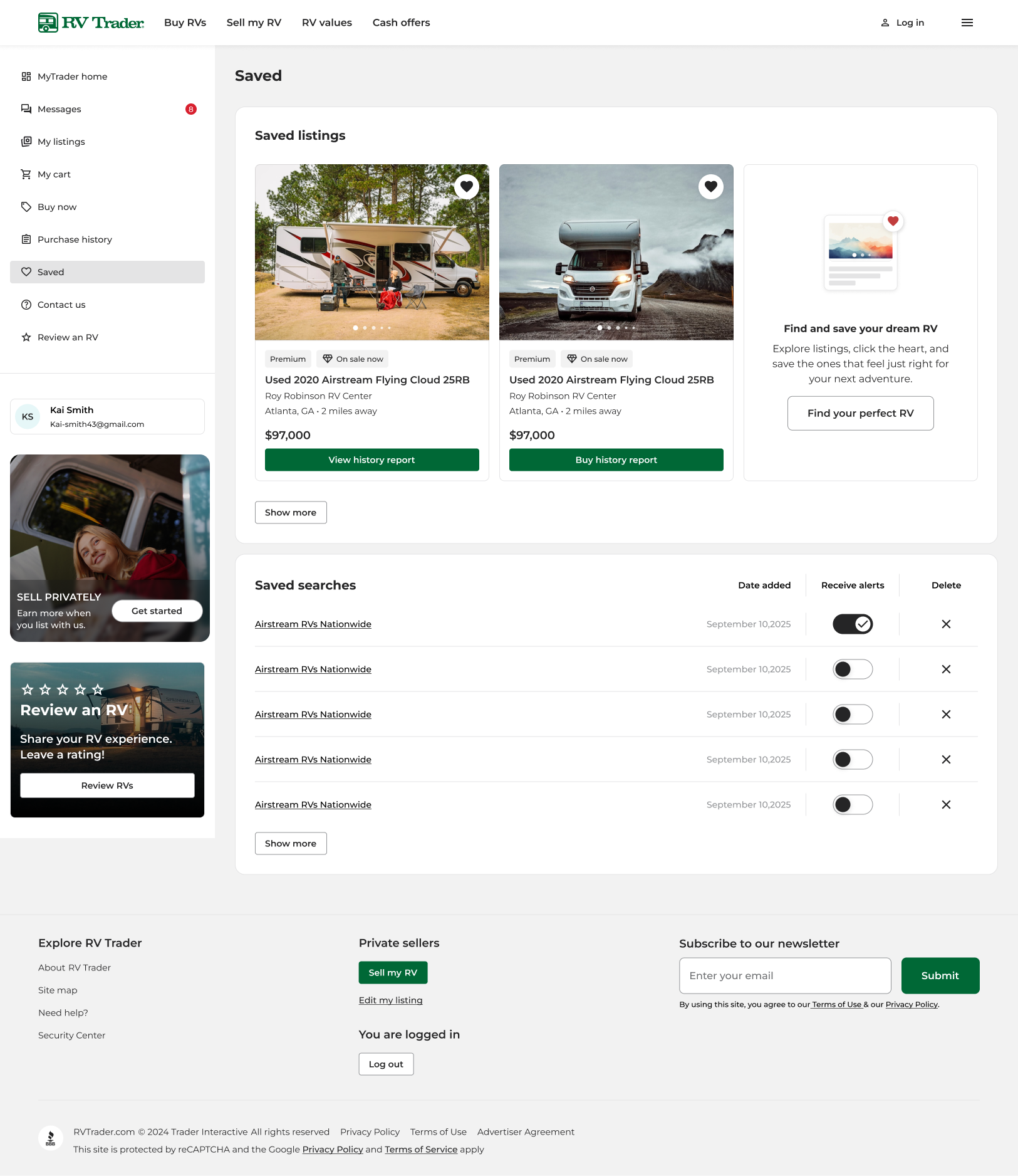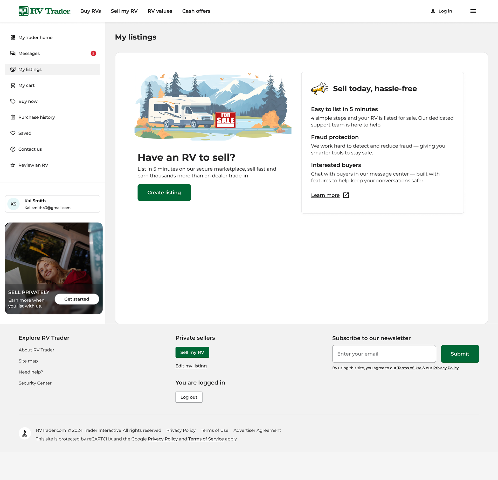 A core requirement of the redesign was to create a flexible, unified account center that could support the needs of all marketplaces under the Trader umbrella—including RVTrader, ATVTrader, CycleTrader, and Boatmart—while still allowing each brand to maintain its unique identity.